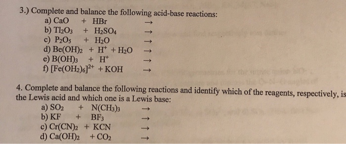 Let us see the following question complete and balanced the equation for the following acid based reactions name the reactors and products. We know that acid plus basic use salt and water. Submitted by Anonymous not verified on Fri 06012007 - 0242.
